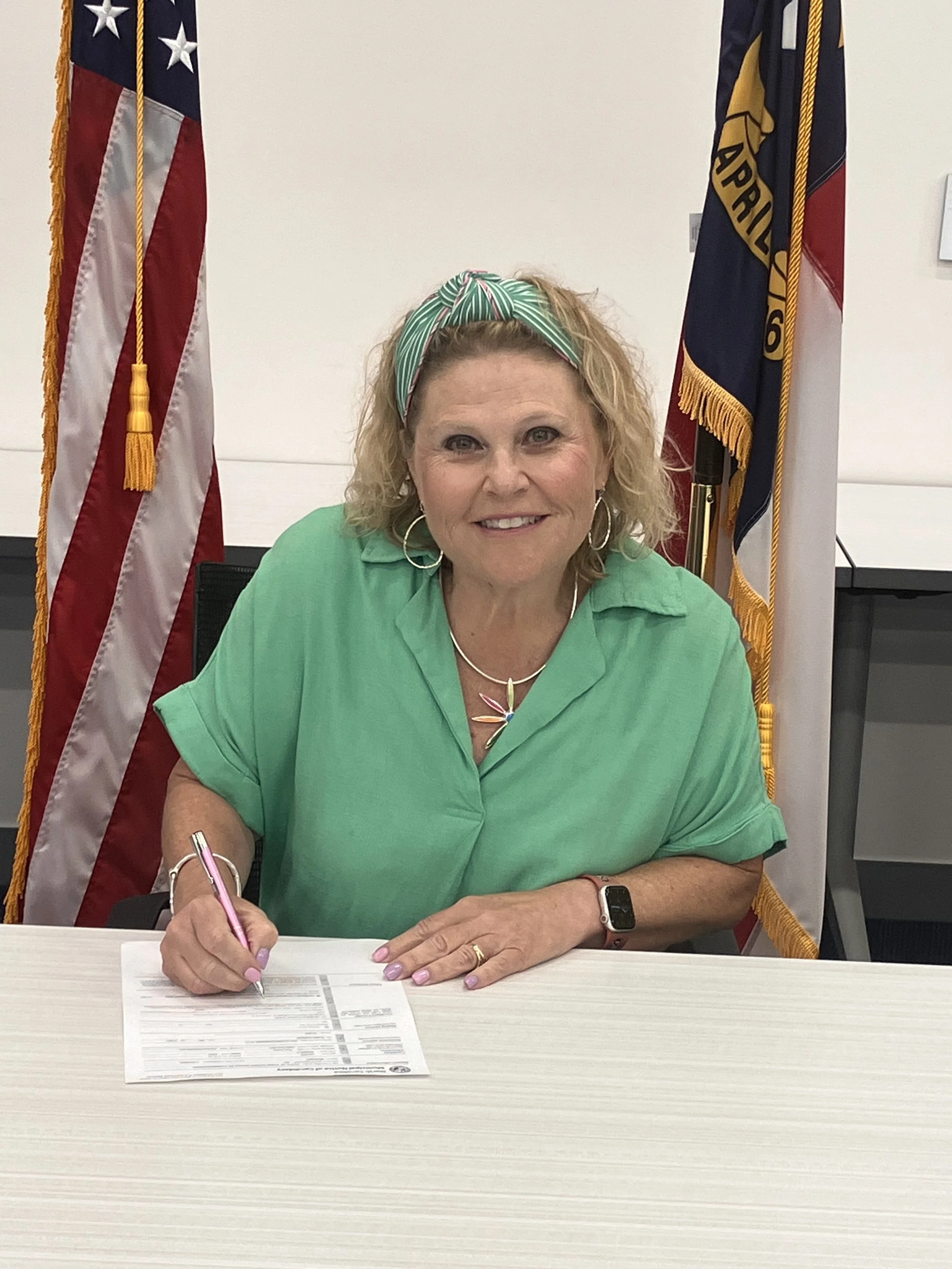 “Pam, I’m so happy to endorse you for town commissioner of Wake Forest. You’re the perfect woman for the job. You’ve been such a great friend to me and you’re such an asset to our town.”
